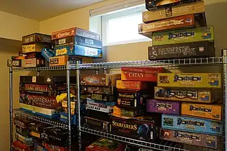 - ↑ Kirkpatrick, Karen (27 de abril de 2015). «¿Qué es un juego de mesa de estilo alemán?». HowStuffWorks.com. Consultado el 20 de julio de 2021. «Presentan poca o ninguna suerte, y temas económicos, no militares. Además, todos los jugadores permanecen en la partida hasta que ésta termina.»