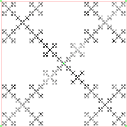 Si el juego del caos se ejecuta con un cuadrado, no aparece ningún fractal y el interior del cuadrado se llena uniformemente con puntos. Sin embargo, si se imponen restricciones a la elección de vértices, aparecerán fractales en el cuadrado. Por ejemplo, si el vértice actual no se puede elegir en la siguiente iteración, aparece este fractal:
