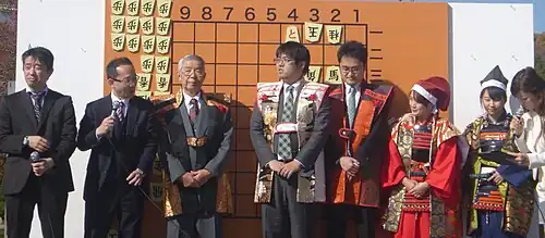 - ↑ «ja:創立・沿革» [Establishment/History] (en japonés). Japan Shogi Association. Archivado desde el original el 6 de octubre de 2014. Consultado el 24 de mayo de 2015.