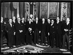 Besteiro, en el centro, junto a Édouard Herriot, durante una visita de este último a España en 1932.