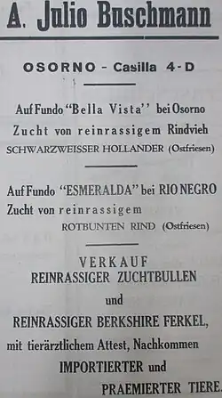- ↑ Gallardo, Eduardo (2017). Modernización ganadera en el sur de Chile: Osorno y sus contactos chileno-alemanes en perspectiva transnacional, 1917-1939. Berlín.