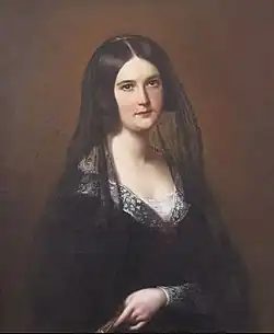 ![]() Dama con abanico, óleo de 1844 por Julius Jacob | ||