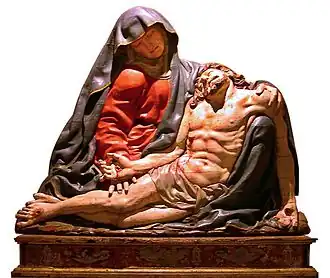 - Piedad. Barro cocido policromado, altura, 0,28 metros, anchura, 0,58 metros. Museo Marés. Barcelona.