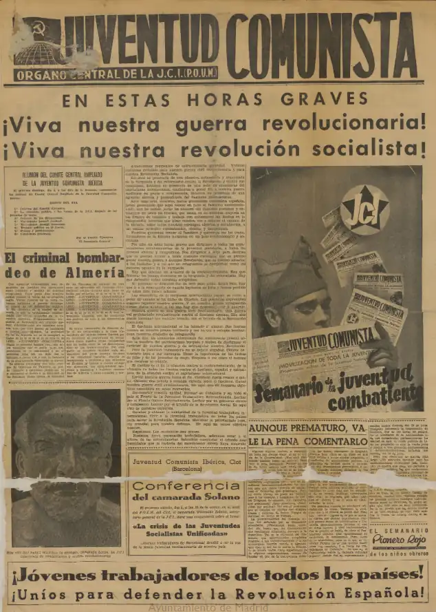 - ↑ «Juventud obrera : órgano de la Juventud Comunista Ibérica (POUM)». Juventud obrera : órgano de la Juventud Comunista Ibérica (POUM). 1937-. Consultado el 15 de junio de 2025.