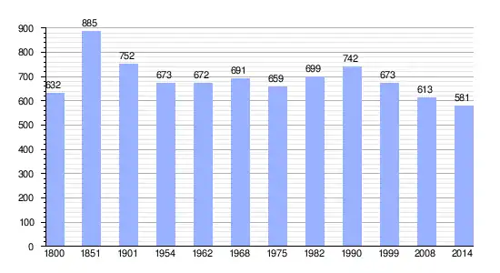 Los datos demográficos contemplados en este gráfico de la comuna de Juvigny-le-Tertre[4] se han cogido de 1800 a 1999 de la página francesa EHESS/Cassini, y los demás datos de la página del INSEE.[5]