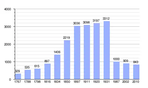 | Gráfica de evolución de Kámenka entre 1767 y 2010 |