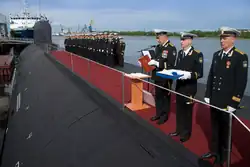 El Severodvinsk fue entregado a la Armada rusa a fines de diciembre de 2013.[2] La ceremonia de izamiento de la bandera se llevó a cabo el 17 de junio de 2014, marcando su introducción en la Armada rusa.[3]