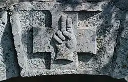 - Cruz de la peste, 1648, donante Ambrosius Regondi, con escudo de armas.