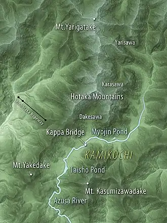 - ↑ Guía de viaje de Japón (ed.). «Kamicochi. El primer resort natural de montaña en Japón». Consultado el 30 de abril de 2020.