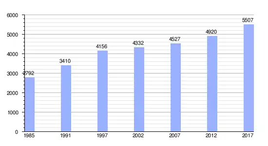 | Gráfica de evolución demográfica de Kani-Kéli entre 1985 y 2017 |