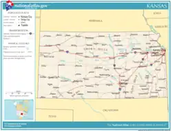 El centro geográfico de los 48 Estados Unidos contiguos está localizado en su zona norte, en el condado de Smith. El centro geodésico de América del Norte también se encuentra en su territorio, en Osborne. Este se utiliza como punto de referencia para todos los mapas del gobierno federal.