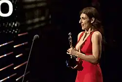 ![]() Karina Gidi recibe el premio Ariel a Mejor Actriz por Los adioses. | ||
