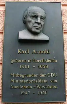 - ↑ a b c d e f g h i j k Blume, Dorlis; Zündorf, Irmgard (15 de enero de 2016). «Karl Arnold 1901 - 1958». En Stiftung Haus der Geschichte der Bundesrepublik Deutschland (Fundación Casa de la Historia de la República Federal de Alemania), ed. Lebendiges Museum Online (en alemán). Archivado desde el original el 4 de marzo de 2016. Consultado el 27 de octubre de 2021.
