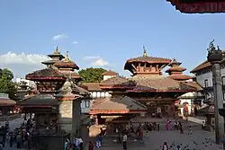 La ciudad de Katmandú recibe su nombre de una estructura en la plaza de Durbar, llamada Kaasthamandap. Este templo fue construido en el año 159 d. C. por el rey Laksmi Narsingh Malla. Está construido enteramente con madera sin ningún clavo de hierro o soporte de ningún tipo. Una leyenda indica que la madera necesaria fue obtenida de un único árbol.