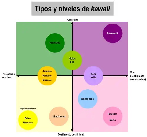 Dentro del entorno sobre lo que es kawaii, existen varios tipos de sensaciones generadas por los siguientes objetos:[13]