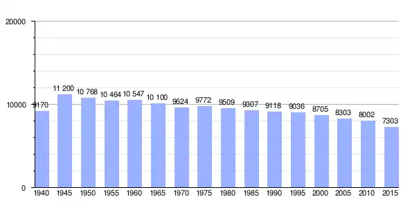 Gráfica de evolución demográfica de Kawazu entre 1940 y 2015