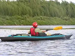 El kayak (del inglés kayak, y este del esquimal qayaq) es una variedad de piragua de uno a cuatro tripulantes cuyo uso es fundamentalmente deportivo. Según el Diccionario de Oxford, es una canoa individual de remo, cubierta de pieles, que utilizan los esquimales.[1]En su origen eran de un solo tripulante y se usaban para pescar y cazar. El tripulante o palista se acomoda sentado y orientado en dirección al avance, a diferencia de las embarcaciones de remo, y propulsa la embarcación mediante una pala de doble hoja o cuchara que no necesita de apoyo sobre el casco.
