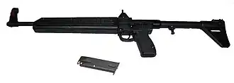 ![]() Una Kel-Tec SUB-2000, junto a un cargador de Beretta 92. | ||