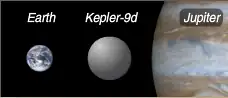 Kepler-9d con La Tierra y Júpiter en comparación de tamaño. | ||