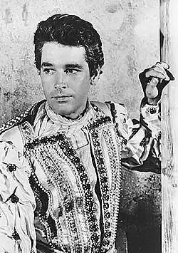 Kerwin Mathews a los 35 años, como protagonista de la película Jack y el gigante asesino (1962). | ||