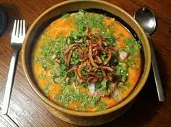 En la gastronomía de Birmania, Khow Suey, es un plato de fideos que viene de las montañas del estado de Shan. Se trata de una sopa de harina de un plato hecho con fideos de huevo y curry de carne o pollo con leche de coco, servido con una variedad de contrastes de condimentos.[1] Es similar al plato Birmano de fideos Ohn no khao swè, literalmente, "fideos de leche de coco".