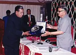- ↑ «Former Union minister Khurshed Alam Khan passes away at 95». The Economic Times (en inglés). 20 de julio de 2013.