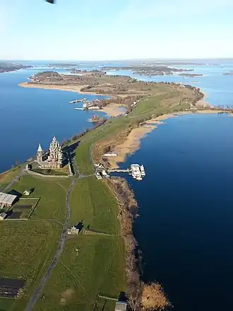 ![]() Vista aérea de la isla y el Kizhi Pogost | ||