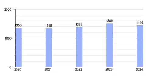 Hasta 2024 la población era de 1446 habitantes,[2] con una densidad de población de 133,02 hab/km².[2]
