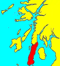 La península de Kintyre, en rojo, dentro de Argyll | ||