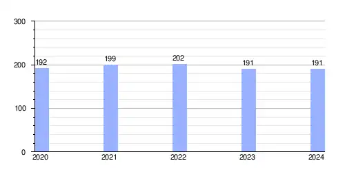 Hasta 2024 la población era de 191 habitantes,[2] con una densidad de población de 46,24 hab/km².[2]