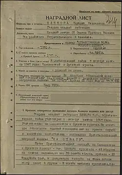 - ↑ a b «Блинова Клавдия Михайловна: Память народа». pamyat-naroda.ru (en ruso). Consultado el 20 de febrero de 2022.
