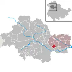 Se encuentra ubicado al norte de la ciudad de Eisenach, al noroeste de Erfurt, la capital del estado.
