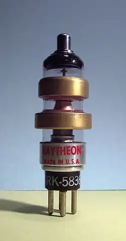 El klistrón o klystron es una válvula de vacío de electrones en la cual se produce una modulación inicial de velocidad impartida a los electrones. En la última etapa se genera un campo eléctrico que es función de la velocidad modulada del haz de electrones y que finalmente genera una corriente de microondas. Se utiliza como amplificador en la banda de microondas o como oscilador.