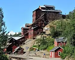 En Wrangell-San Elías se desarrollaron cinco importantes distritos mineros durante el apogeo de la minería entre los años 1890 y 1960. En 1901 se encontró oro en el distrito de Bremner y en la zona de Nizina, cerca de Kennecott. La mayor parte del oro de estas zonas procedía de |placeres, obtenido mediante minería hidráulica. Junto con el oro se encontraron pepitas de cobre, que normalmente se descartaban por no ser rentable su transporte hasta que se mejoraron las carreteras de la zona. En el distrito de Chisana se produjeron otros hallazgos de oro, con una pequeña estampida de mineros a la zona entre 1913 y 1917. Durante la década de 1930 se extrajo mineral de veta en el distrito de Nabesna.[31]