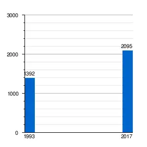 | Gráfica de evolución demográfica de Km. 50 entre 1993 y 2017 |