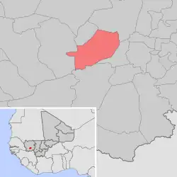 Se encuentra ubicada al oeste del país y al sureste de la región de Kayes, cerca de la frontera con República de Guinea y la región de Kulikoró.
