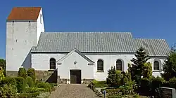 La iglesia está situada junto a la carretera local –que mantiene el histórico nombre de Hærvejen– y hay un pequeño punto para el descanso de los peregrinos. En él se ha erigido una cruz del camino para conmemorar las que había en los caminos daneses antes de la llegada de la reforma protestante.