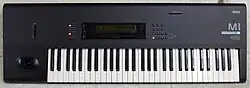 El M1 cuenta con un teclado sensible a la velocidad y al aftertouch de 61 notas, polifonía de 16 notas con programas de 1 oscilador (u polifonía de 8 notas con programas de 2 osciladores), un joystick para control de modulación e inflexión de tono, un teclado de ocho notas Secuenciador MIDI de pistas, LFO separados para vibrato y modulación de filtro, y envolventes ADSR.[2] Los datos se pueden almacenar en tarjetas RAM y PCM.[2]