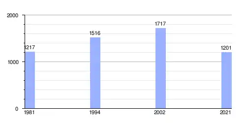 Hasta 2021 la población era de 1201 habitantes,[2] con una densidad de población de 134,5 habitantes por kilómetro cuadrado.[2]