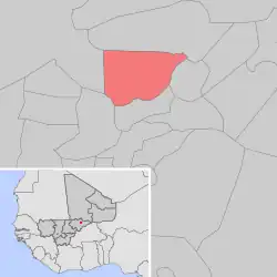 Se encuentra ubicada en el centro-este del país, cerca de la frontera con Burkina Faso y con la región de Tombuctú.