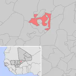 Se encuentra ubicada en el centro del país y de la región de Mopti, cerca de la confluencia de los ríos Níger y Bani.