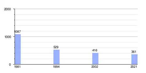 Hasta 2021 la población era de 361 habitantes,[2] con una densidad de población de 59,01 habitantes por kilómetro cuadrado.[2]