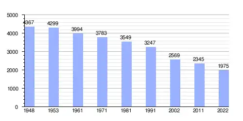 Hasta 2022 la población era de 1975 habitantes,[4] con una densidad de población de 57,01 habitantes por kilómetro cuadrado.[4]