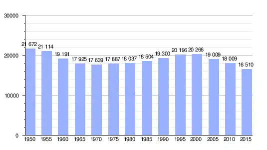 Gráfica de evolución demográfica de Kujūkuri entre 1950 y 2015