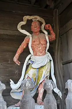La sala principal y la figura esculpida por Kūkai se perdieron en un incendio en 1927. Posteriormente comenzó la reconstrucción del salón en 1940 gracias a varios sacerdotes, hasta que se vio interrumpida por la Segunda Guerra Mundial. Finalmente, en 1946, se completó todo el templo y se celebró la ceremonia de consagración de la imagen principal recién tallada.[1][4]