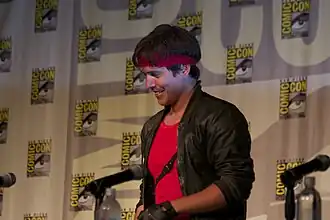 ![]() El director y estrella de Kung Fury, David Sandberg, en un panel sobre la película en la Comic-Con International 2015 en San Diego. | ||