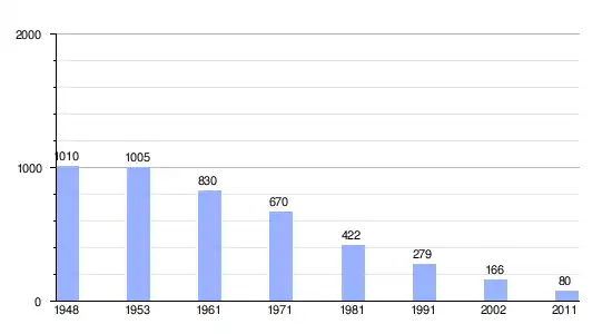 | Gráfica de evolución demográfica de Kusa Vrana entre 1948 y 2011 |