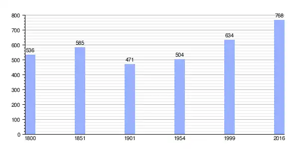 | Gráfica de evolución demográfica de Lézigné entre 1800 y 2016 |
