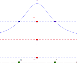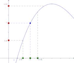Esta es una formulación estricta del concepto de límite de una función real en un punto de acumulación (o punto límite) del dominio de la función y se debe al matemático francés Louis Cauchy.[5]