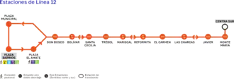 - ↑ Sanchez, Glenda. «Cuáles y dónde están las estaciones de la línea 12 del Transmetro de Guatemala». República.gt. Consultado el 18 de abril de 2024.